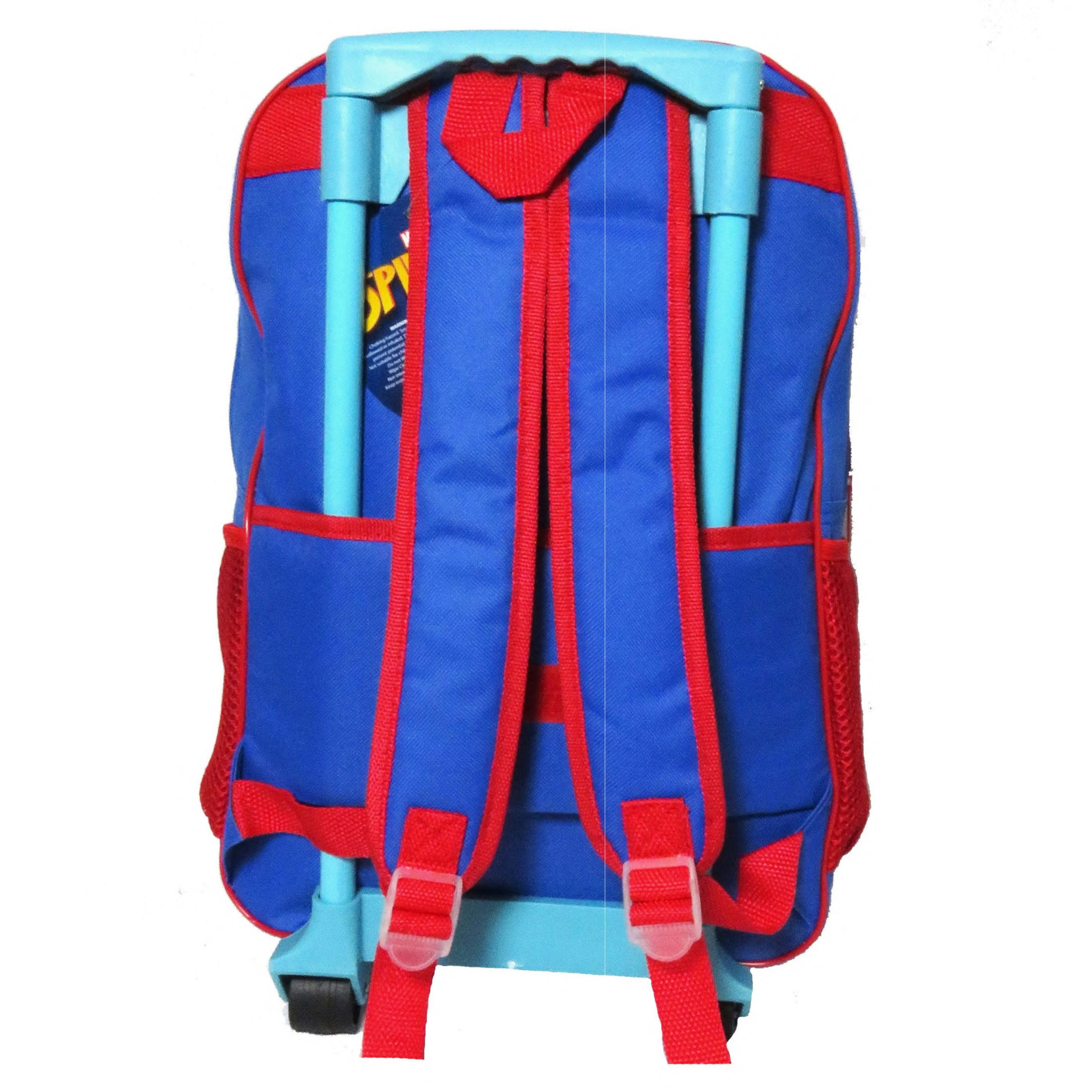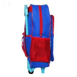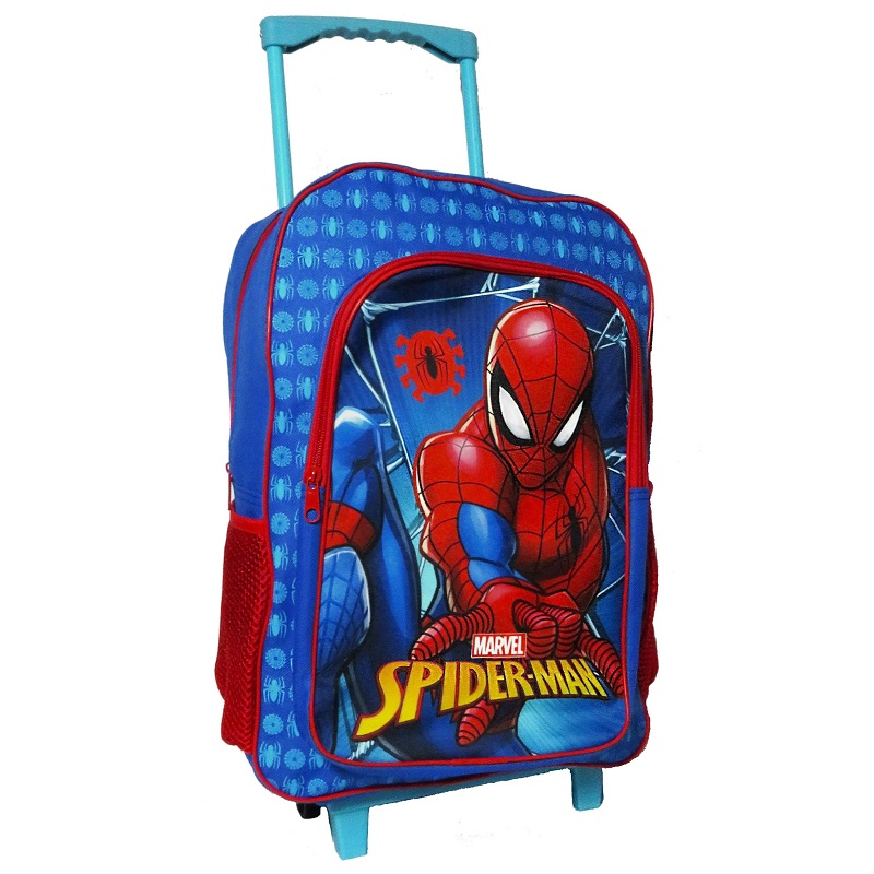 This impressive  Spiderman Deluxe Trolley Backpack has easy adjustable padded shoulder straps, padded back support for more comfortable carrying, a carrying handle and a zipper into the main compartment with a second large zipped pocket with a very large glossy image of all your favourite  Baby Shark  characters, 2 side netted pockets for carrying drinks bottles, a top grab handle that pulls out connected to a sturdy frame and 2 wheels for pulling along the trolley which is foldable.