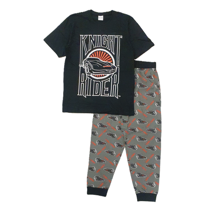 Return To ShopMen’s Knight Rider pyjamas set. Size S-XL. Colour multi . Material cotton. Machine washable. With 2 pocket on lounge pant.Short sleeve top.