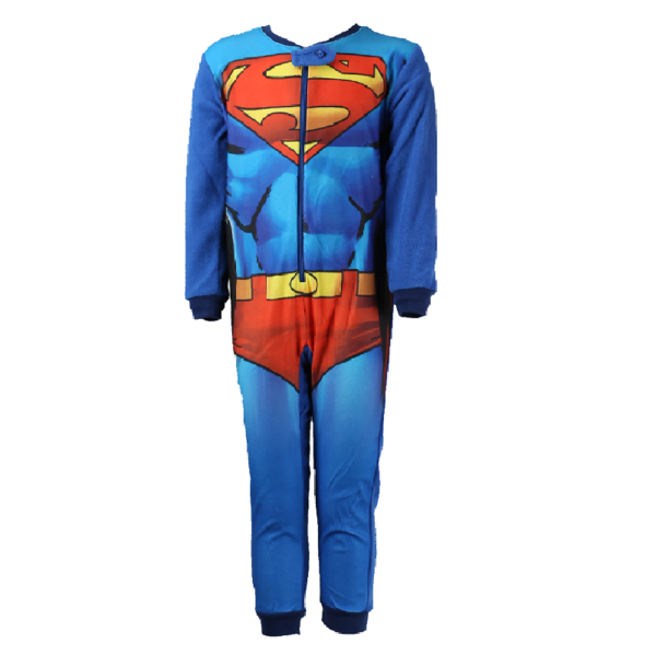Superman onesie. Boys DC Superman all in one pyjamas. Size 3-8 years. Front zip opening. Material fleece. Machine wash