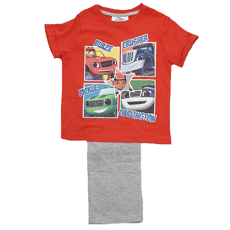 Blaze pyjamas. Size 18-24, 2-3, 3-4 & 4-5 years. Colour grey. Short sleeve. Material 100% cotton. Machine washable