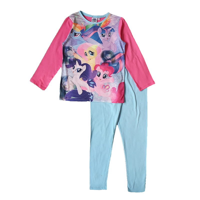 Girls My Little Pony pyjamas set.Size 4-5,5-6,7-8 & 9-10 years. Material 100% cotton. Elasticated waist. Long sleeve. Machine washable.